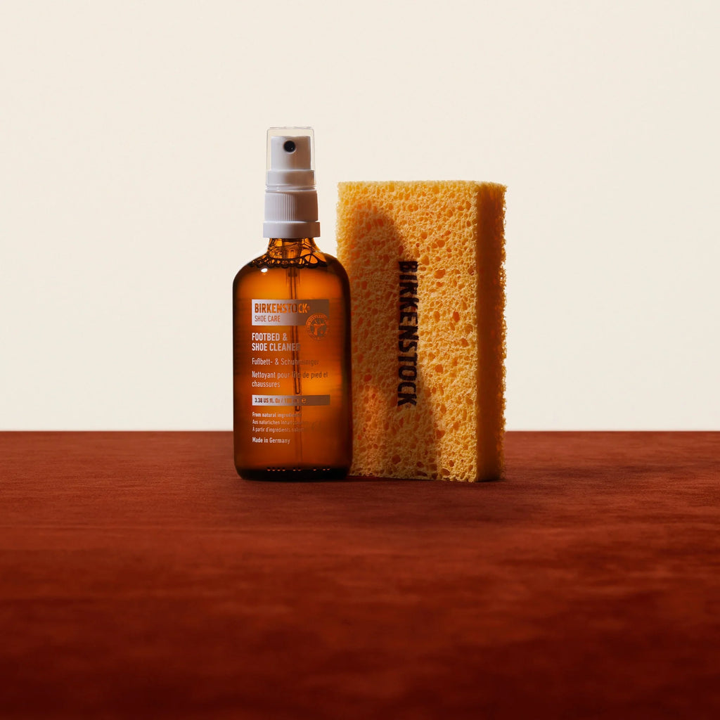 The BIRKENSTOCK Footbed & Shoe Cleaner is a water-based solution that consists of