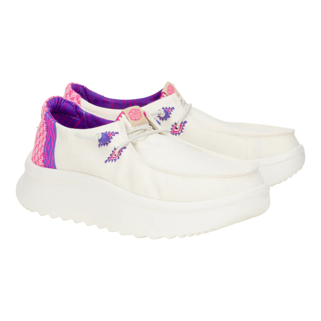 Up your style game with Wendy Peak Chambray Woven. Added, cushy comfort and height meets woven textile heel and webbing details for the perfect mix of comfort and style. So easy to put on you’ll never wanna take ‘em off.