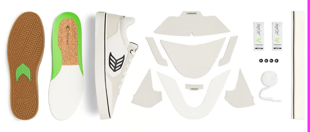 Laces: Made with recycled plastics + organic cotton, with debossed metal aglets