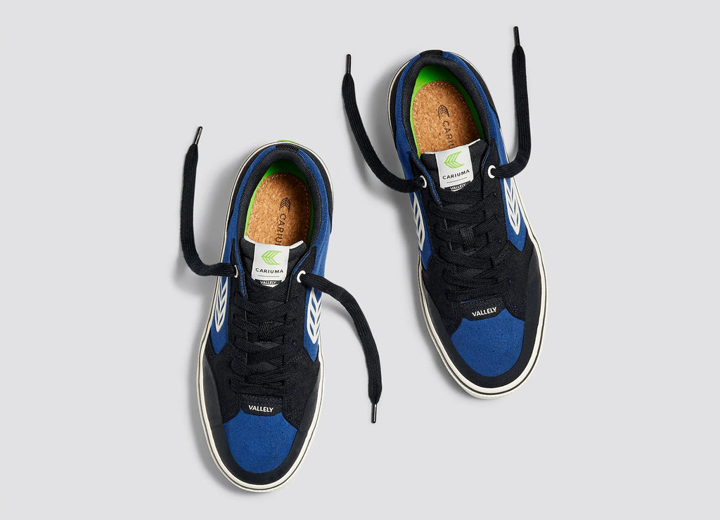 Cariuma Vallely Skate Black Suede Mystery Blue