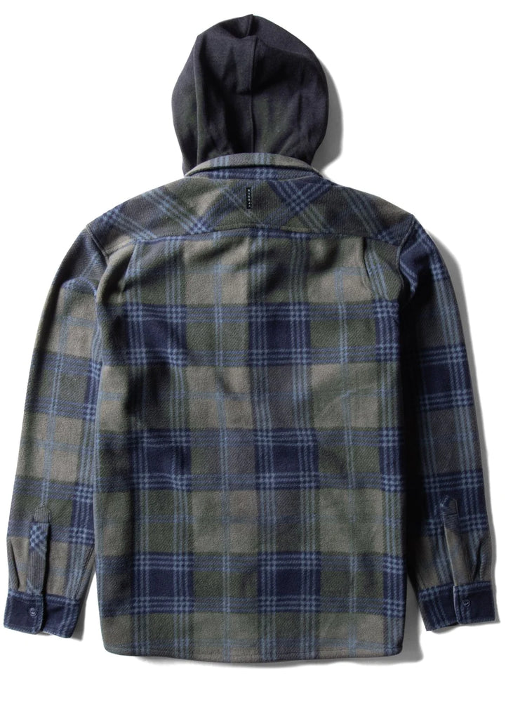 Warm up to the Eco-Zy Mens Shirt Jacket, our ultra-soft and versatile heavyweight polar fleece. This mens “shirt jacket” is constructed with a built-in fleece hood, making it the perfect cold weather companion. Styling includes front chest pockets with button down flap, hand pockets, and Vissla woven label trims. Heavy garment wash.