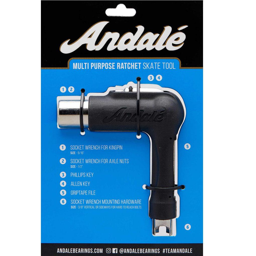 With its quality craftsmanship and versatile features, the Andale Ratchet Multi Purpose Skate Tool provides all of the components necessary to assemble and maintain your board in one, easy-to-use multifunctional skateboard tool.