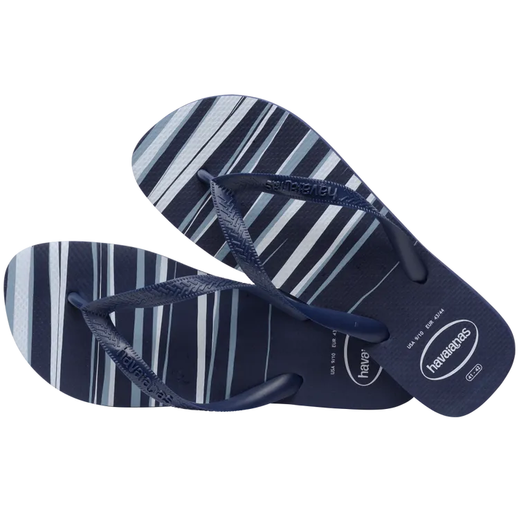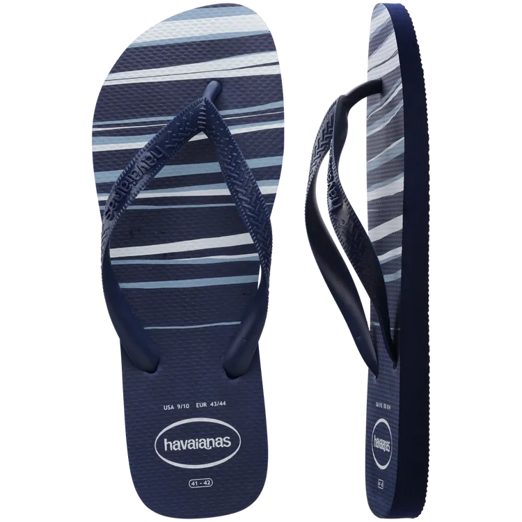 Meet your new go-to sandals for any occasion: the Havaianas Top Basic men's flip flops. Available in classic colour combinations with minimalist stripe prints, these flip flops are versatile enough to work with any look. Whether you're heading to the beach or running errands around town, the Havaianas Top Basic men's flip flops are perfect for every moment.