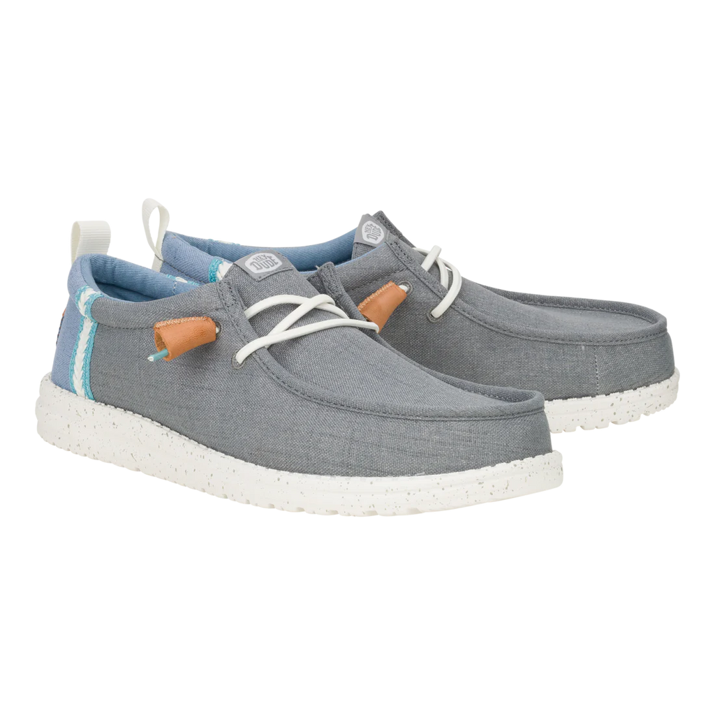 Hey Dude Mens Wally Craft Linen Grey Faded Denim