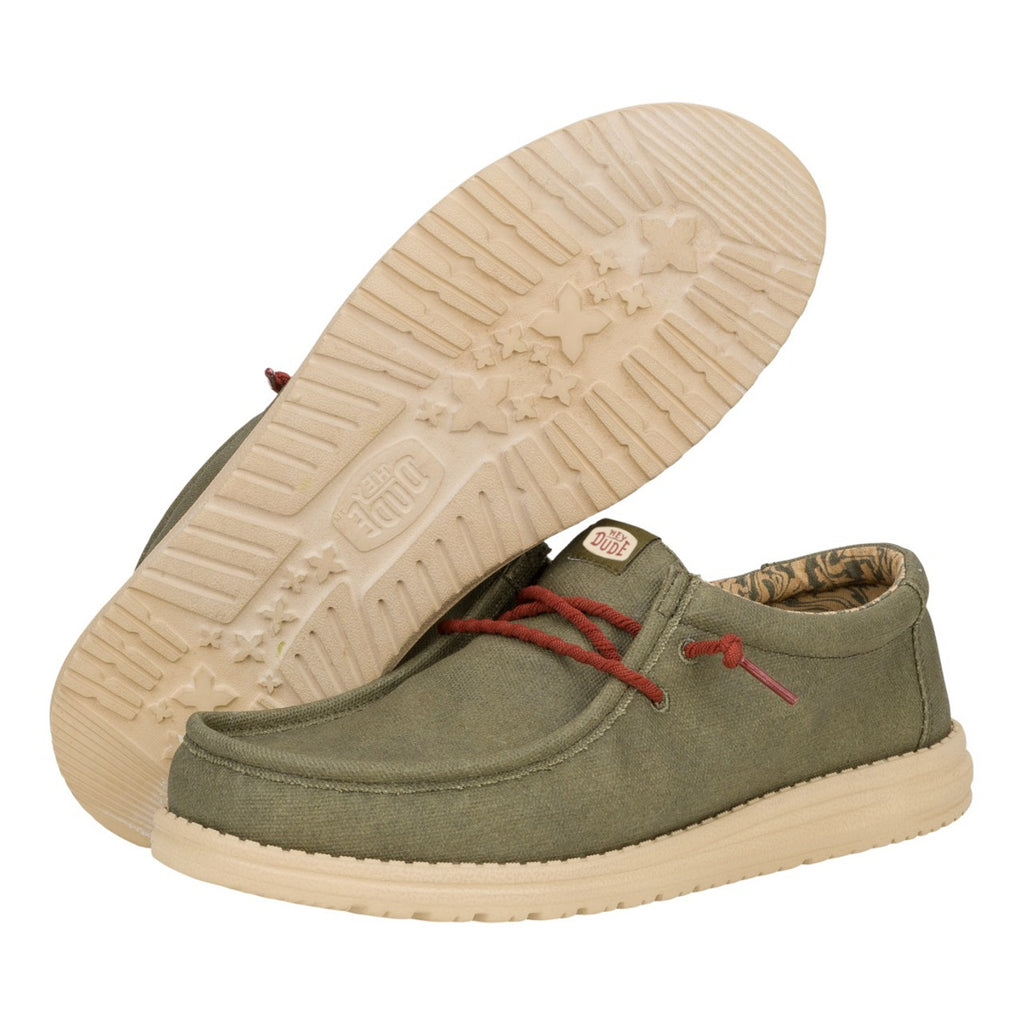 Hey Dude Wally Waxed Canvas Shoes Olive