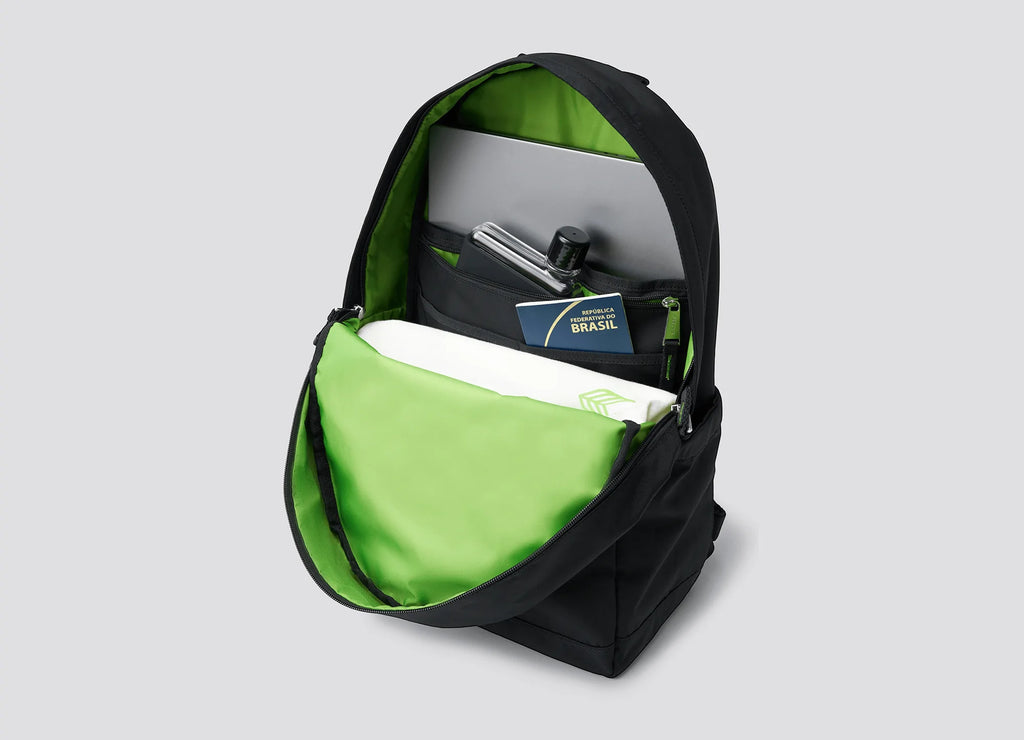 The JJ Backpack fits any laptop 13-17”, with a side pouch for your reusable water bottle and a supportive chest strap. Our roomy, rounded silhouette is crafted with recycled materials from Global Recycled Standard-certified sources.