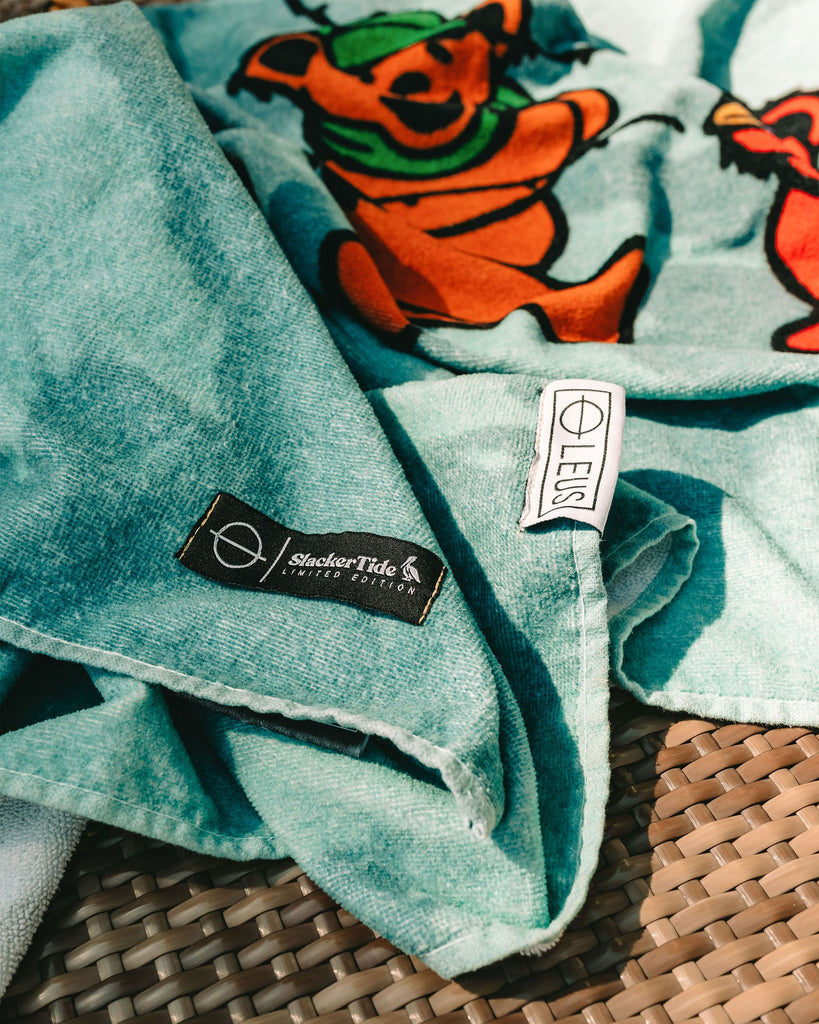 Go cast a line on your next trip to the Big River with our collaboration Slackertide Beach Towel. Crack open a cold one, play some tunes, and see if any of the local bears will start dancing.