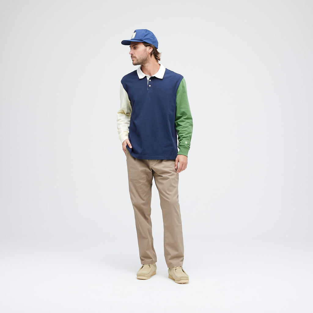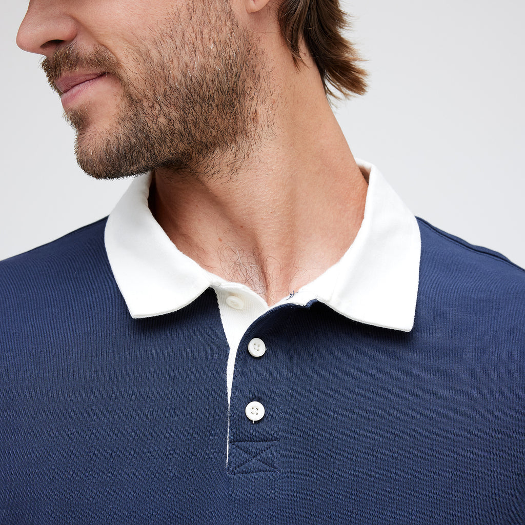 The Long Sleeve Rugby Shirt offers a classis silhouette for a casual and clean on-the-go look.