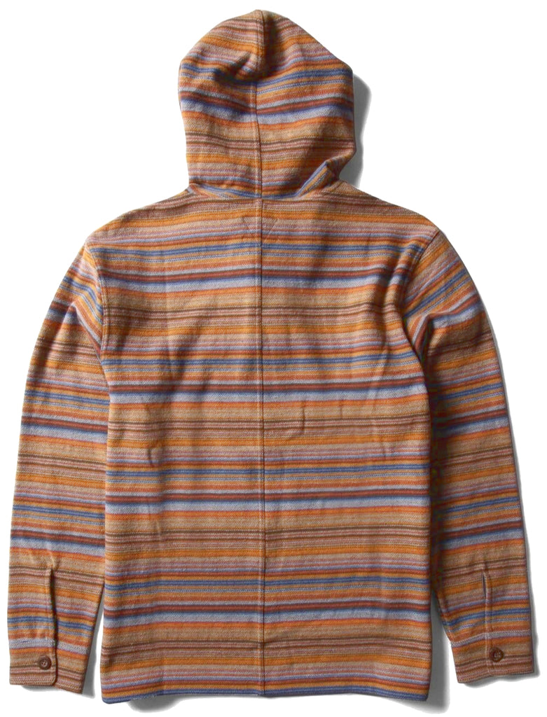Keep warm and add some flare to your surf style with the Vissla Mens Descanso Hooded Popover. This soft and cozy heavyweight mens hoodie features a 6 button-down placket with a hood and drawcord, as well as a kangaroo pocket and centre back seam. Plus, its unique native-inspired design will make you stand out in the lineup. Get ready to rock this mens hoodie with a heavy garment wash for extra comfort.