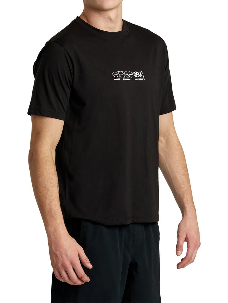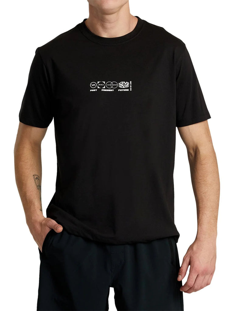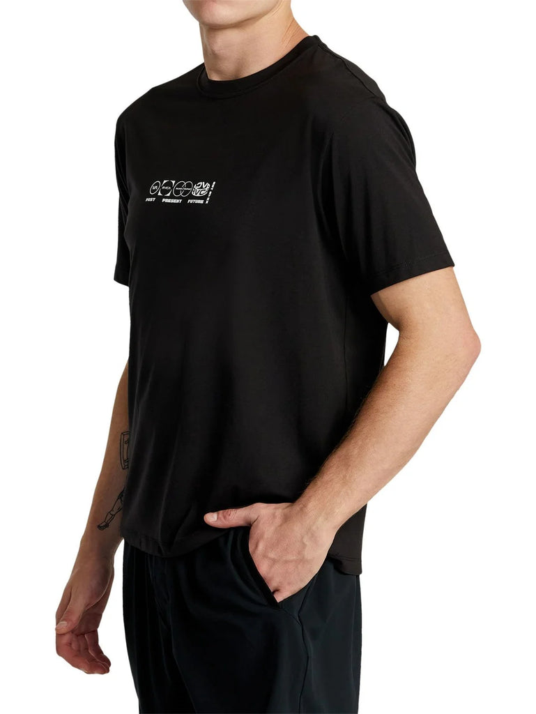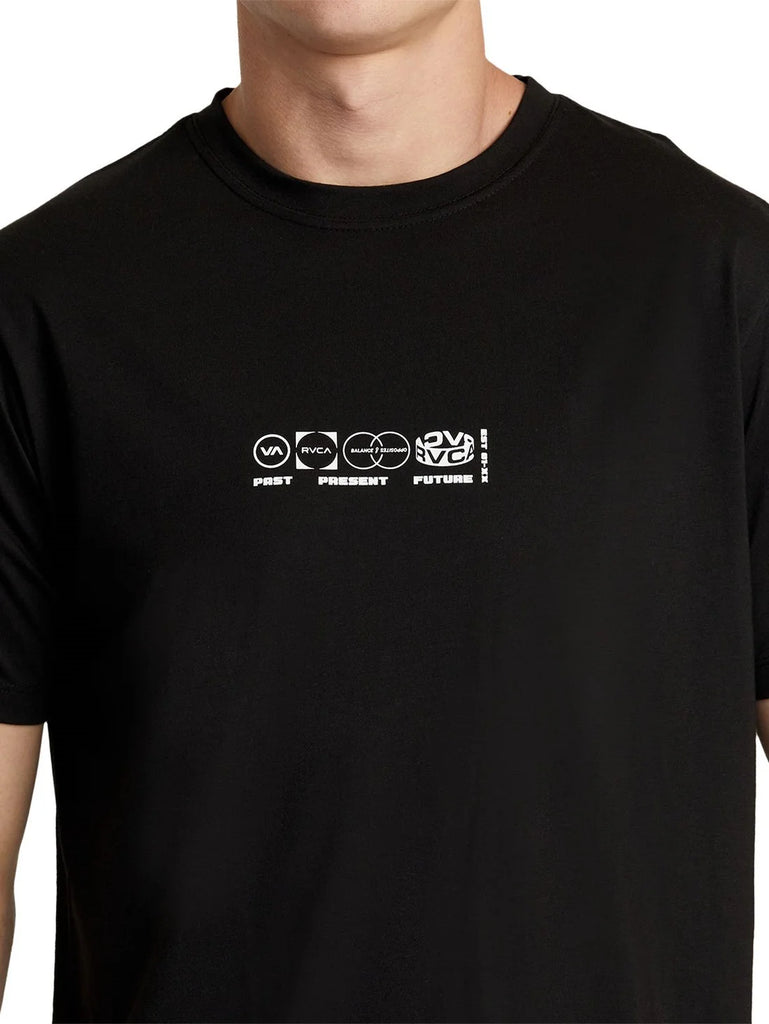 Featuring short sleeves and a crew neck, this black RVCA Segments Ss Tee is made from a blend of 85% polyester and 15% cotton. With a weight of 155 gsm and a regular fit, it is perfect for any casual occasion. Plus, the front is adorned with a playful and quirky screen print graphic.