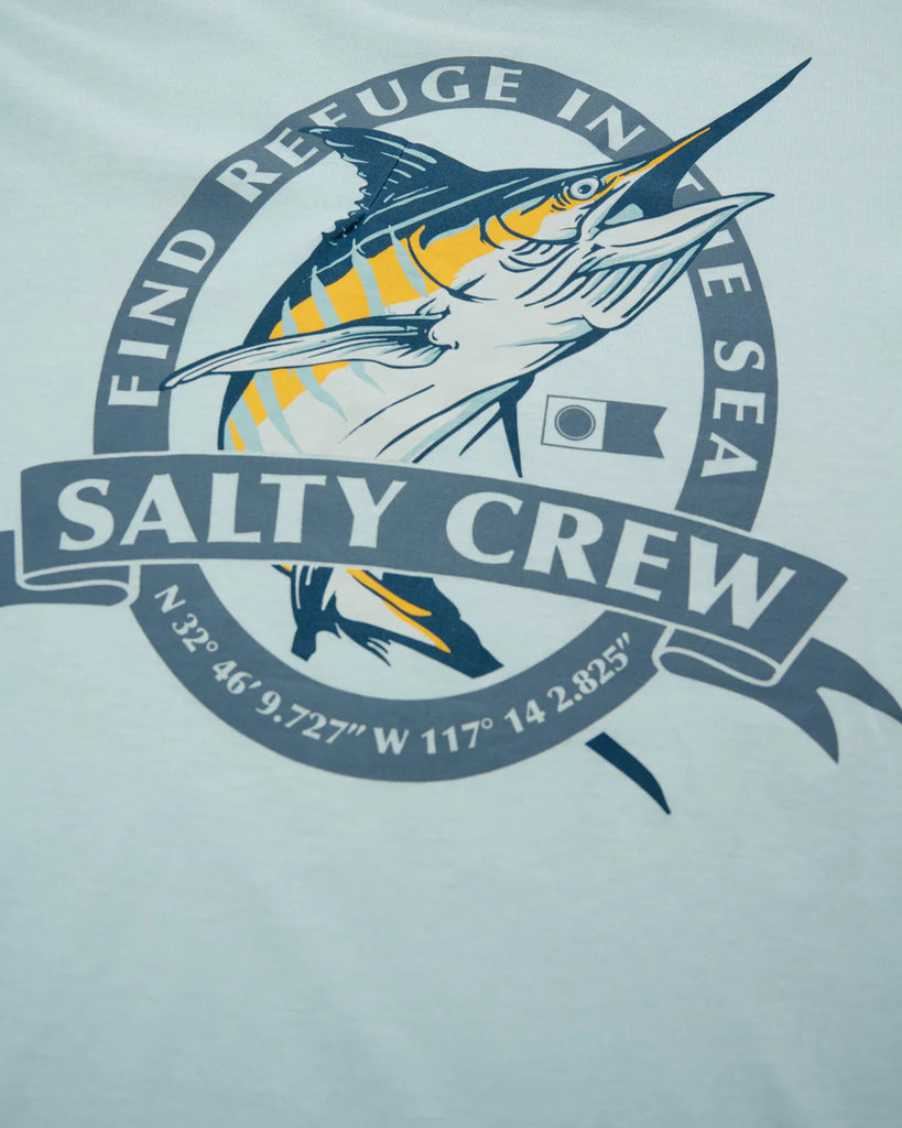 The Bill Club Premium SS Tee in Blue Fog is made from ringspun cotton jersey, 160gsm in weight. It features screen printed front and back prints and is finished with a Salty Crew clamp label at the sleeve hem.