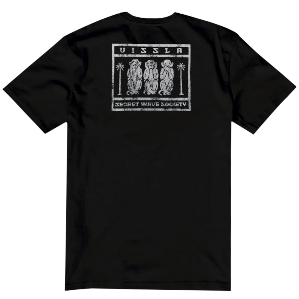 Ignite your inner rebel with the Vissla Mens Secret Society Ss Tee Black. Channel your wild side with a bold design featuring the iconic "see no evil, hear no evil, speak no evil" monkeys. Made with high-quality materials, this tee is not just a statement piece, but also a comfortable and durable addition to your wardrobe. Show off your unique style and embrace the positive vibes of the Secret Society with this must-have tee.