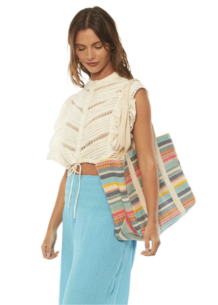 Introducing the Amuse Zadie Bag - the perfect accessory for bold and adventurous fashionistas! Made with a strong Mexicana stripe pattern and sturdy structure, this ladies 100% cotton bag will add a touch of fiesta to any outfit and withstand all your stylish adventures! Viva la Zadie!