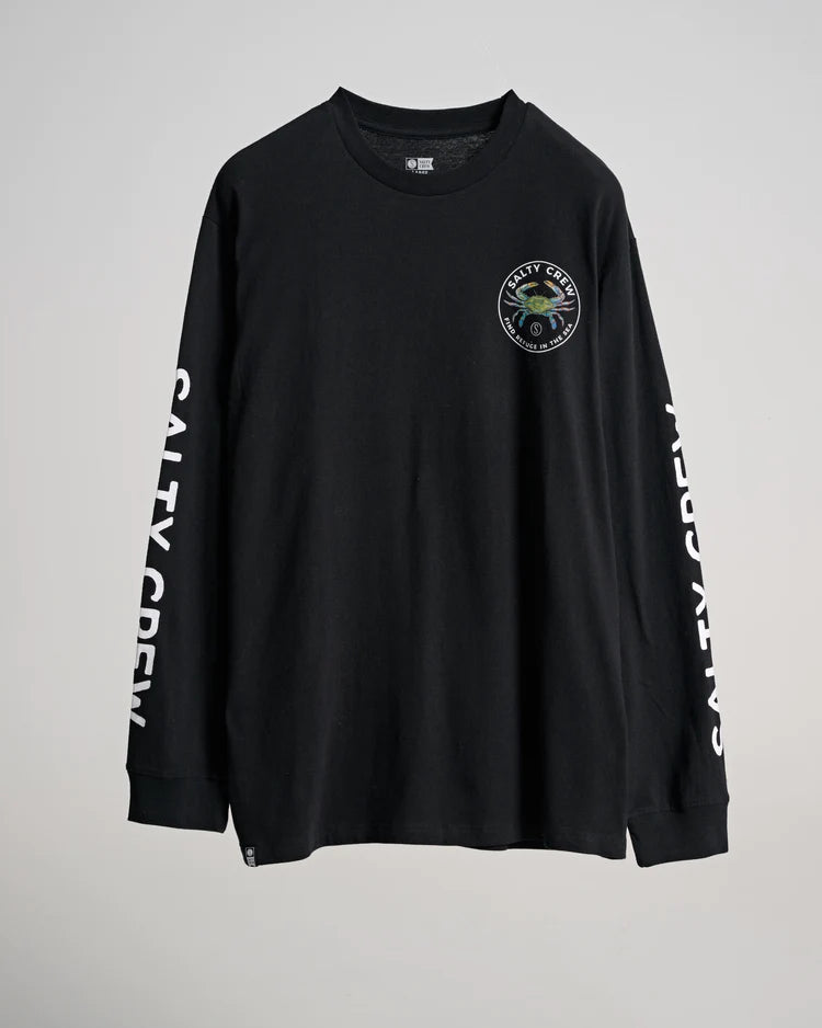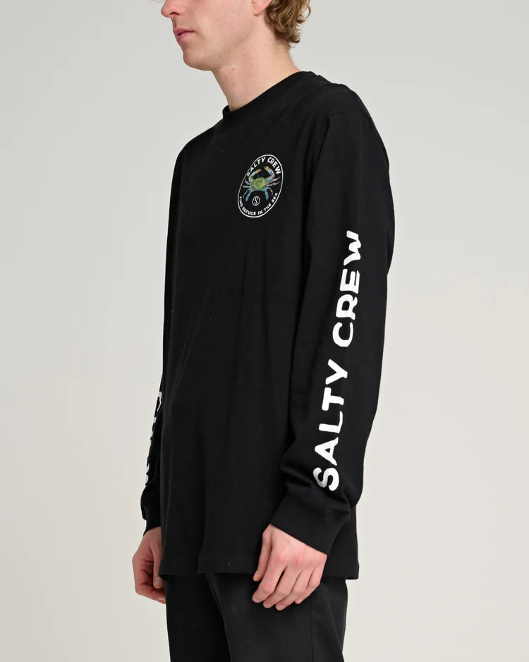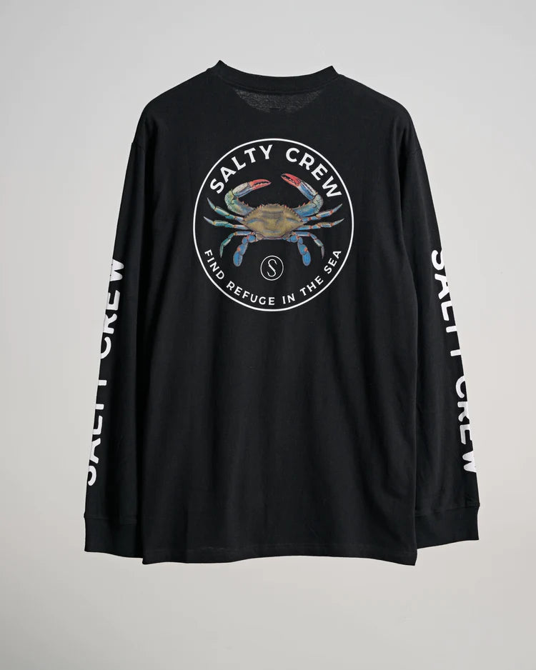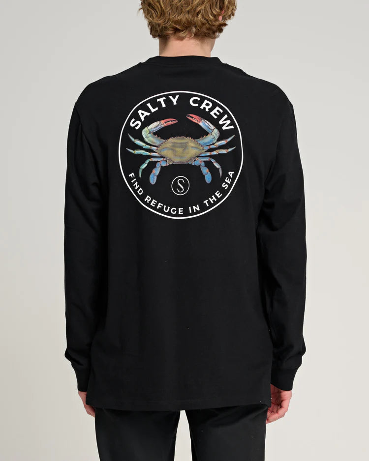 The Blue Crabber Standard LS Tee in Black is a L/S standard mens tee in a 22 singles soft spun featuring screenprinted front, back and sleeves.