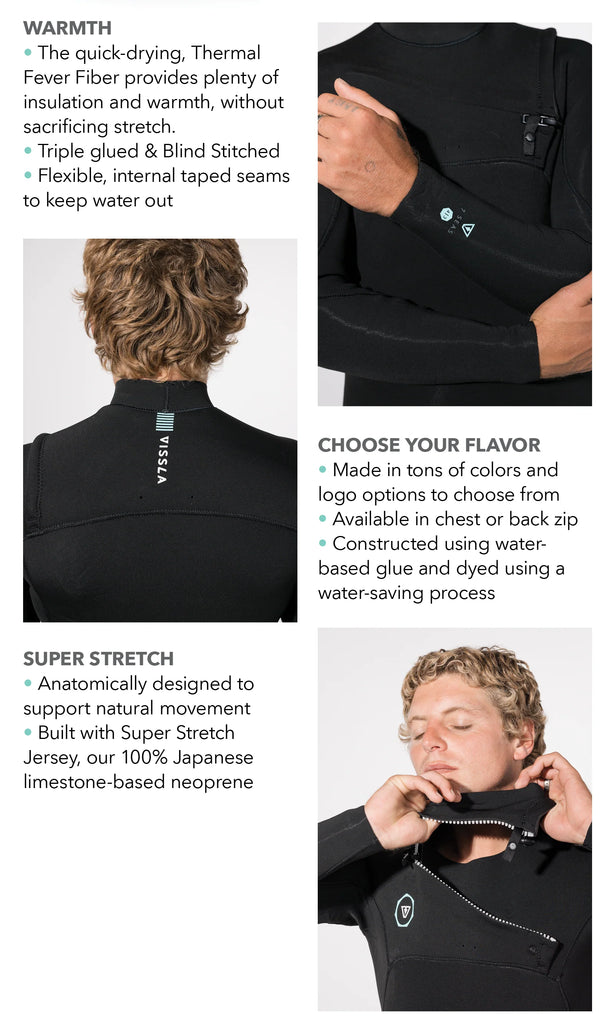• 100% Super stretch Japanese limestone based neoprene - lighter, warmer, softer, stretchier, easier to put on and take off, and allows for more freedom of movement.