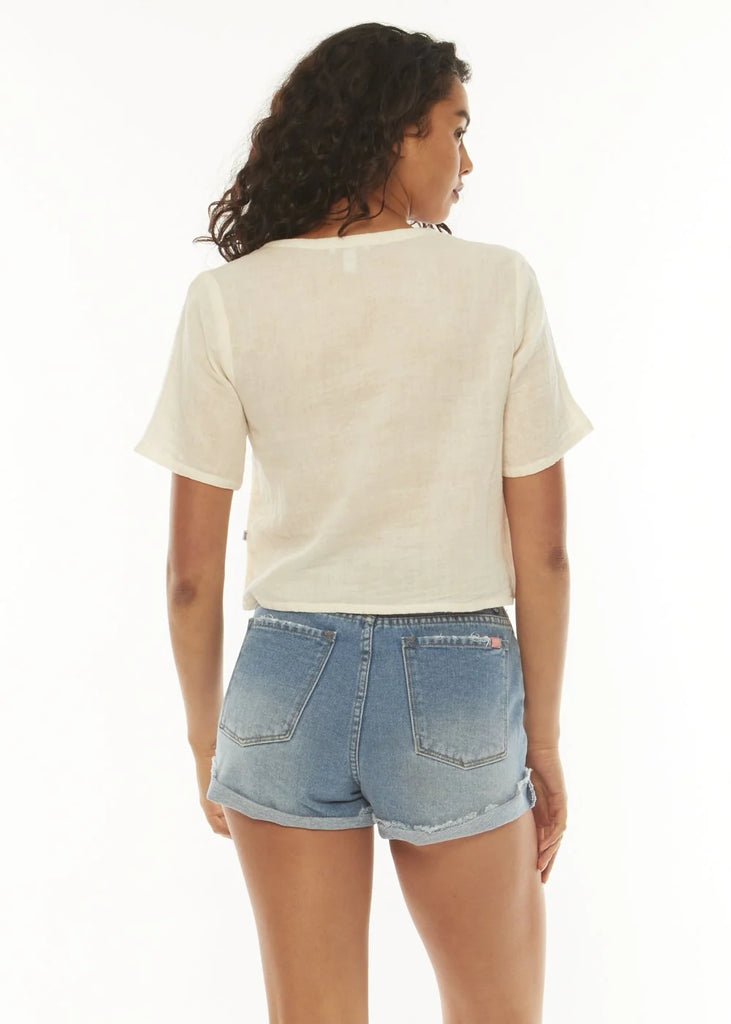 Take on the waves with confidence in the Sisstr Big Surf Ss Woven Top. This women's woven tee brings effortless style and comfort to your adventures. Ride the tide and conquer the day in this bold, lightweight t-shirt.