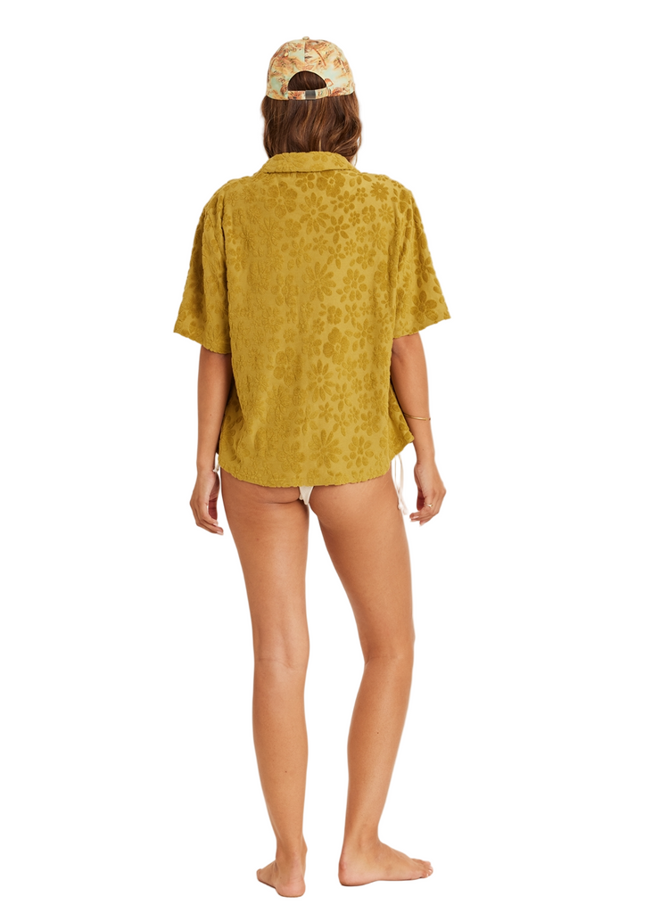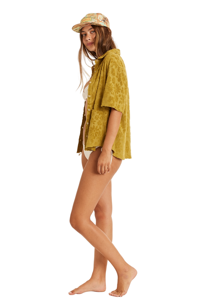 Embrace effortless style with the Sisstr Women’s Haven SS Knit Top in Moss Olas. This cozy terry fleece camp shirt blends 70% cotton and 30% polyester for a soft, breathable feel that keeps you comfortable all day. Featuring a button-front design and short sleeves, it’s perfect for sunny beach days or casual hangouts. The relaxed fit and vibrant moss color bring a playful touch to your wardrobe, making it easy to mix and match with your favorite shorts or jeans. Stay cool, comfy, and stylish no matter where your adventures take you!